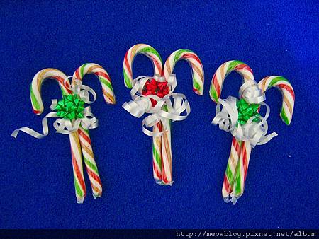 ↓ 拐杖糖果,用禮物帶綁住,加上禮物小花球。